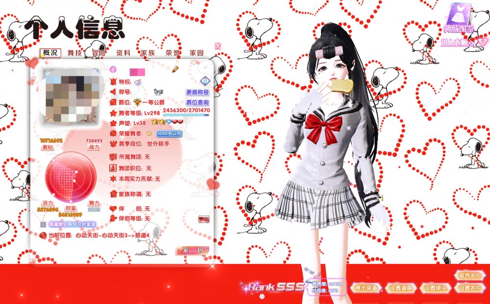 3200出天空女号可砍价钻13消费10.7w财富5431w,脸型有秀丽/62/后来/隔世/芭比/灵动/易燃易爆9页,皮肤有煞白/黑漆漆,白眉/黄眉/八字,套装109页,动作戒指12页/文字戒指6页/全景名片4页/动作名片9个,有昵称底板/有粉昵称,有多个老限时饰品,编号10677