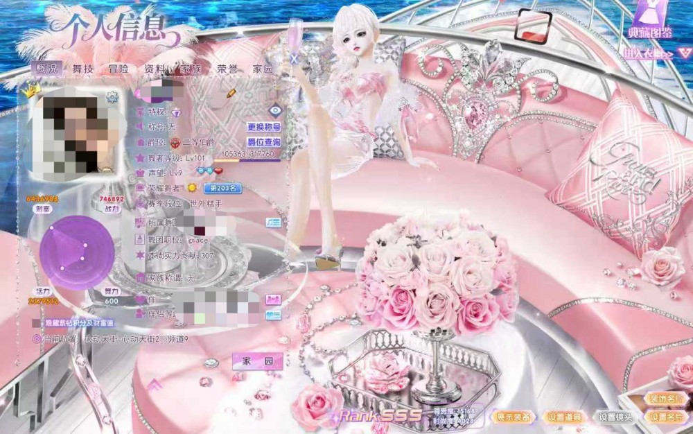 320出起舞女钻7财富615w消费4.5k脸2页浪漫约会鎏金雪色马甲线套装22页全景名片6个动作名片欲情海浪摇滚火焰部分饰品,带45000元宝,编号11325