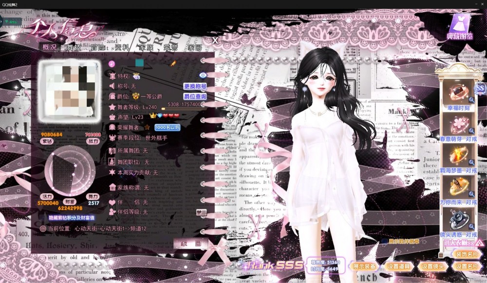2200出巨星钻13女消费9w 财富值6200w 六耳风旅萝莉隔世宠物马力萌猫灵动软萌八月迷离宿醉靡兔千羽馋馋免疯狂博士柔和目光甜蜜周末妖之境邻家悲恸美人芭比--黑色空间--盛夏马尾/黑白女神头--黑夜瞳/墨黑瞳/清透明眸/静夜忧伤/红炽瞳/人鱼海瞳/烟熏妆/春雨眼影/黑唇白唇/煞白/黑漆漆/雪色冷香/末世/双皮奶--马甲线/牡丹上衣/蝴蝶发饰/豹纹头饰/奶牛趴趴帽/爱心膨胀/夏日帽子/棒球帽子/不胜娇着/闪闪黄星/黑色泪痣/俏皮月光/黑腿套/黑红堆堆腿套/钻石の泪滴/膝盖之伤/红色鼻头/熊猫马甲/小熊披帽/暖冬相伴/雪人包包/金色邀约/双人变装名片等等。编号11252