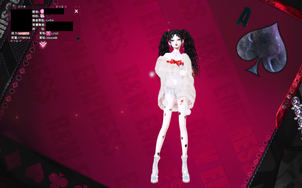 1500出巨星钻10黄金之心女号消费2.5W财富1778W——桃心暗影星闪扑克等动作名片/2页动作戒/马力爱神后来龙隐静默几秒字母等4页脸型/煞白龙隐皮/赛车眼影/白唇/锁骨/蓝色魅力/白烟/骷髅焰火/婚纱项链婚纱白花等小饰品,编号11676